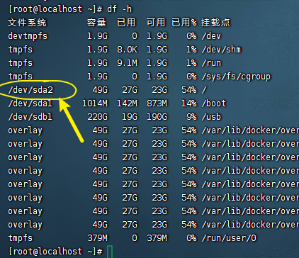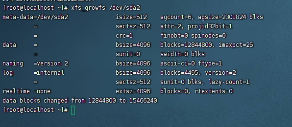 5.xfs_growfs /dev/sda2 同步文件系统xfs