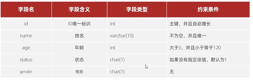 注意:约束是作用于表中字段上的,可以在创建表/修改表的时候添加约束。