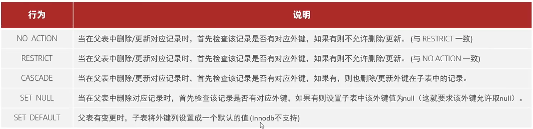 ALTER TABLE 表名 DROP FOREIGN KEY 外键名称;删除与更新行为