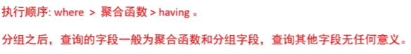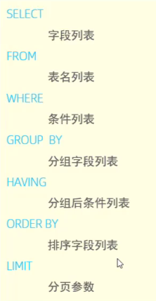 SELECT 字段列表 FROM 表名 [ WHERE 条件] GROUP BY 分组字段名 [ HAVING 分组后条件] ;