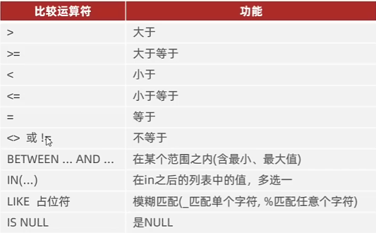 SELECT 字段列表 FROM 表名 WHERE 条件列表;